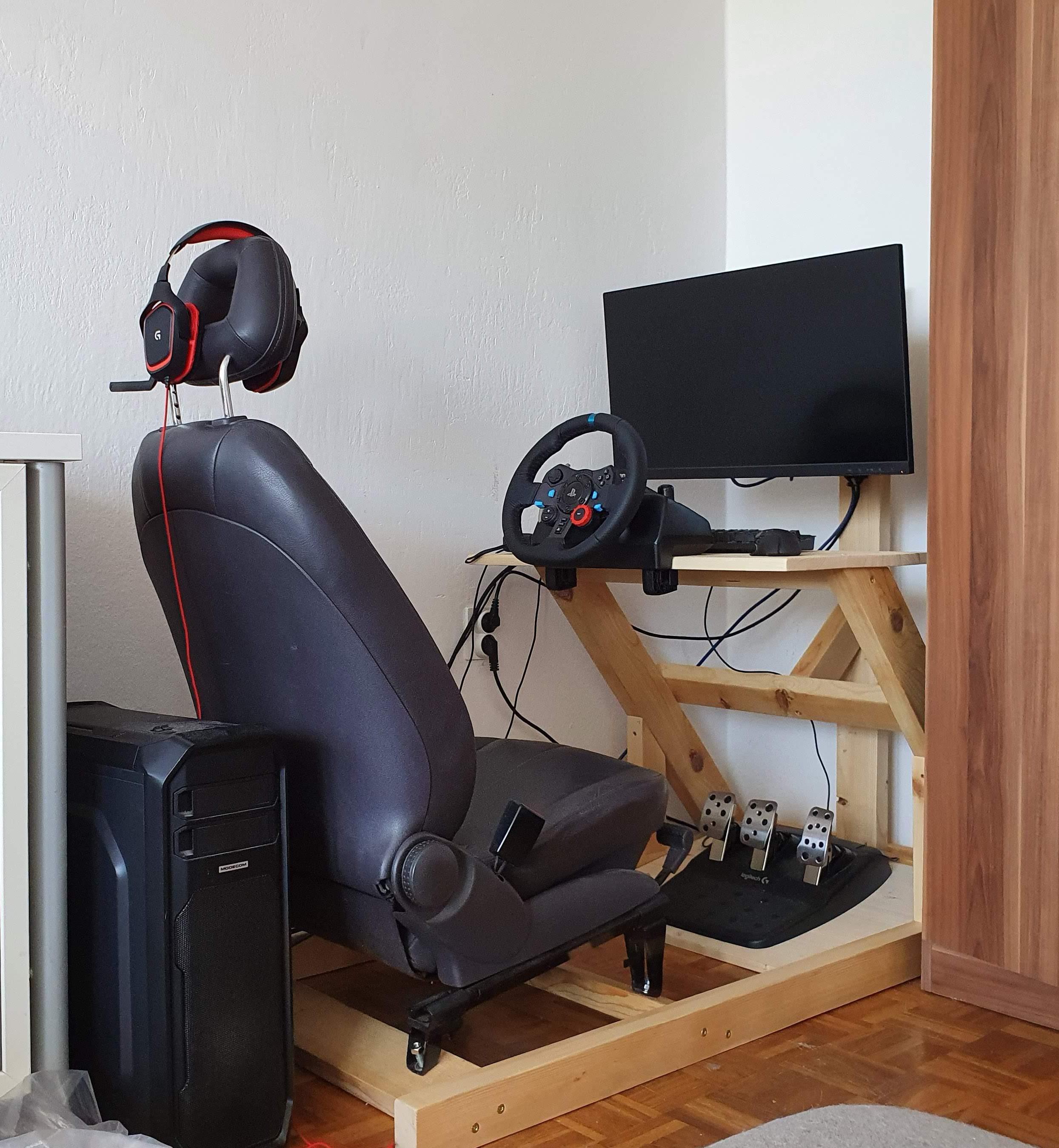 tpog 0 Napisano November 8, 2020 Share Napisano November 8, 2020 Prodam sim racing rig domače izdelave. Ni več tistega začetnega navdušenja za dirkanje, pa se mi zdi škoda, da se na njem nabira prah.Rig je star približno pol leta, v uporabi pa je bil vse skupaj manj kot 30 ur. V celoti je izdelan iz masivnega lesa.Gor je namontiran usnjen sedež iz Mercedesa. Je popolnoma nastavljiv - naprej/nazaj, gor/dol, naklon naprej/nazaj.Rig je bil oblikovan za višino voznika cca 175cm. Ampak predvidevam da je primeren za vse višine - ploščo s pedali se da prestaviti, stol pa gre lahko še precej bolj nazaj.Nosilec za monitor ima dimenzije VESA 75/100.Volan je Logitech G29, kot nov in deluje brezhibno.Dimenzije: Š:65cm, D:150cm, V:120 cmCena v kompletu : 450€Cena brez volana: 280€Samo volan: 220€Zraven priložim še originalno škatlo od volana.Miška, tipkovnica, monitor in računalnik se ne prodajajo.Ogled in prevzem možen v Ljubljani. Kontakt: 051 205 005 Citiraj Link to post
